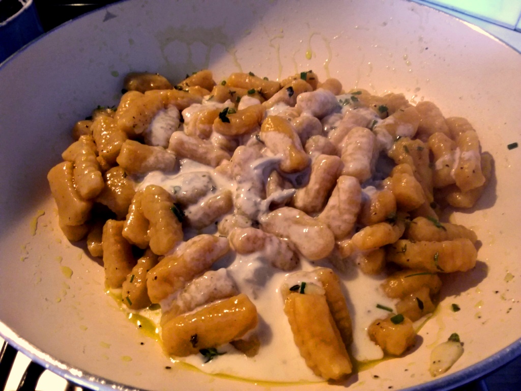 | Ulteriore mantecatura Gnocchi di Zucca e patate con la fonduta |