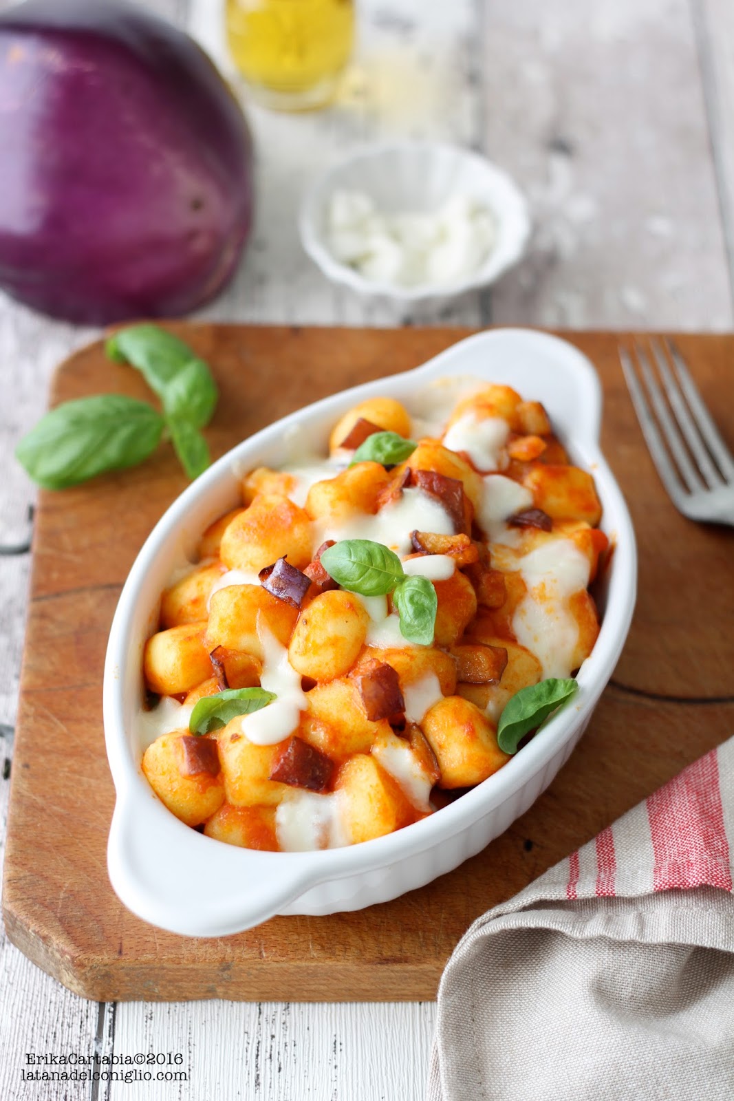 Un primo piatto che è un vero comfort food. Ecco come trasformare, con pochi semplici ingredienti, un piatto di gnocchi al pomodoro per renderlo un primo unico e ricco di profumi e sapori. Vi basterà aggiungere ad un classico sugo di pomodoro melanzane fritte a pezzetti, un po’ come avviene per la famosa “pasta alla Norma”, e, al posto della ricotta salata, aggiungere della freschissima mozzarella di bufala! Fate quindi gratinare tutto in forno per un risultato gustosissimo, ma soprattutto filante!