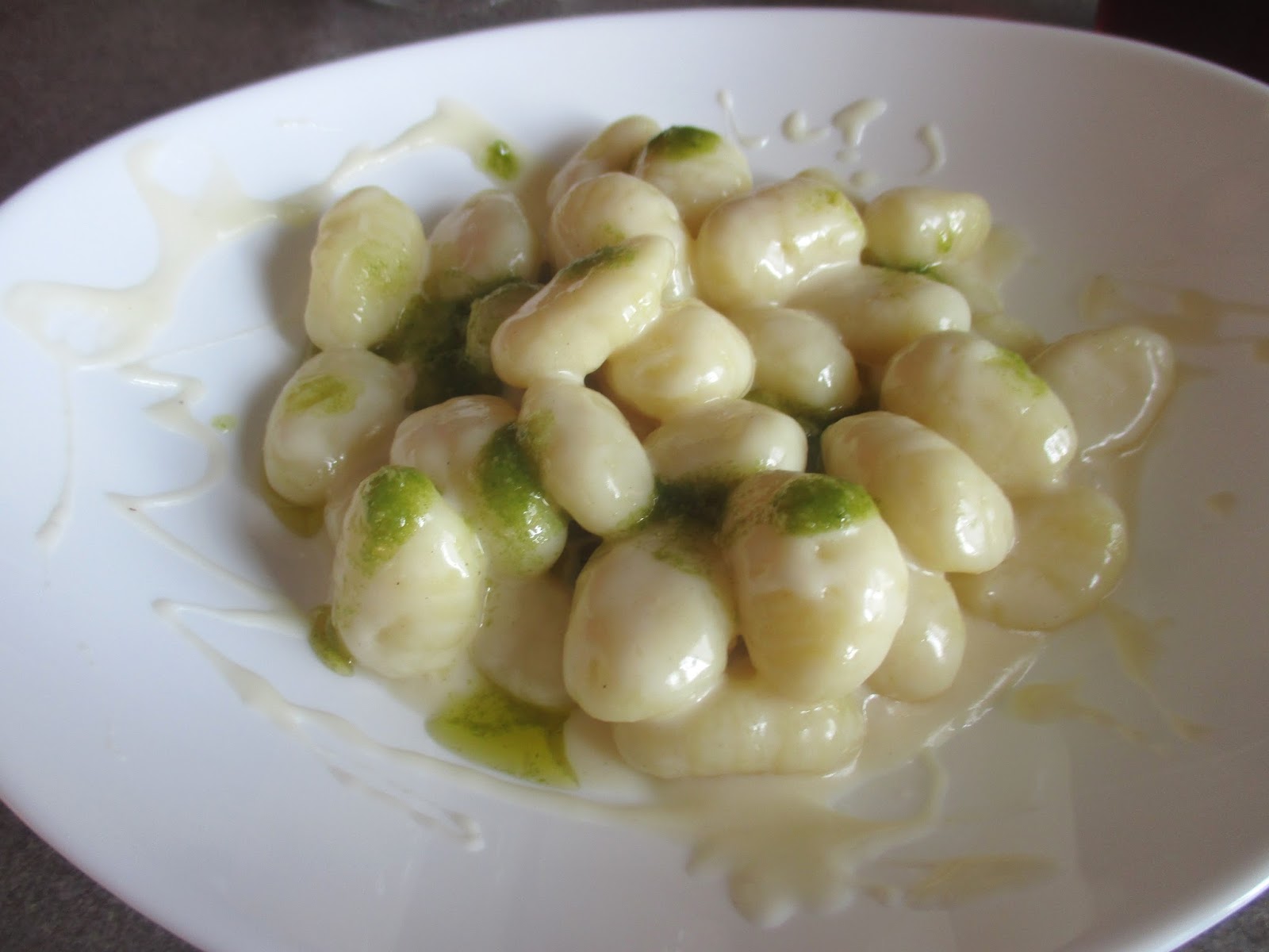Cook the gnocchi in plenty of hot water. A obtained cooking, tadd the melted cheese and basil pesto.