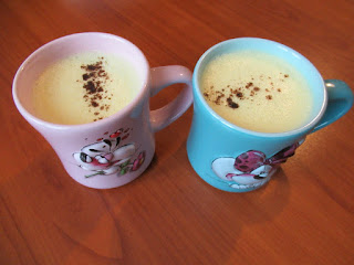 Scaldare il latte con la curcuma. Montarlo con il pimer aggiungendo lo sciroppo d’acero, versarlo nelle tazze e spolverizzare con vaniglia ed un pizzico di pepe.