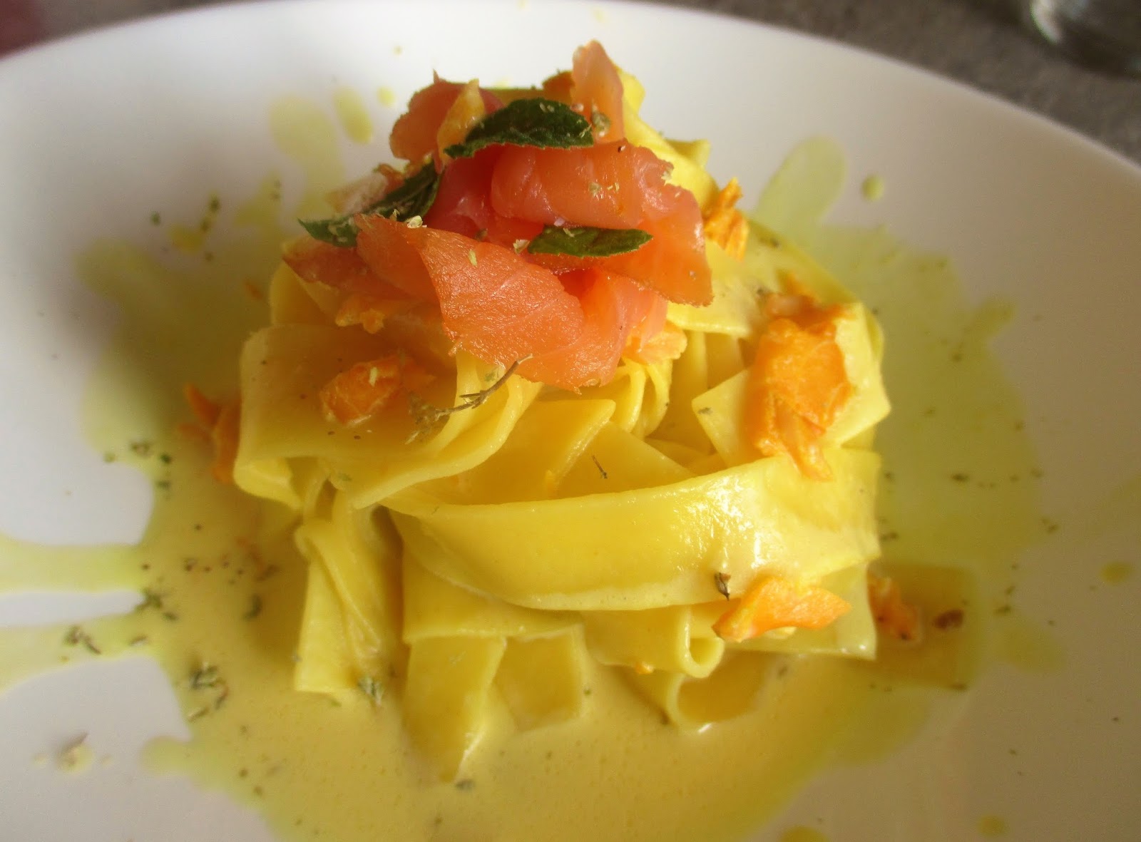 Quando le pappardelle saranno pronte, scolatele e versatele in una ciotola. Aggiungete quindi la panna con lo zafferano, il salmone e l’origano. Girate bene il tutto e servite subito.