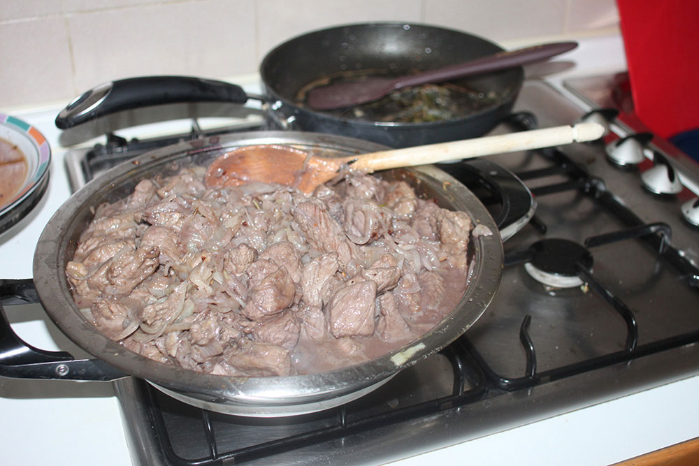 It’s the paprika that warms up this recipe. You will need plenty of paprika: the red colour of the stew is properly due to this spice. In the original recipe no tomato or chili are needed, only paprika.