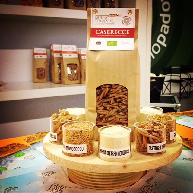 Per cominciare siamo stati allo stand del Mulino Terrevive e abbiamo scoperto la loro pasta biologica macinata a pietra di grano duro semintegrale, farro e in khorasan e ne abbiamo comprato un pacchetto da provare subito con la ricetta che ci hanno consigliato.