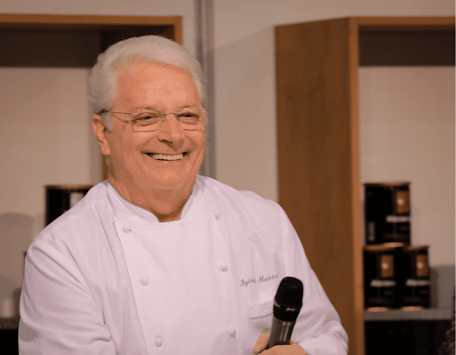 Iginio Massari ha tenuto una breve “lezione” sulle basi della pasticceria, tenendo una piacevole conversazione con la tanta gente, che anche non essendo riuscita a partecipare direttamente all’evento, lo seguiva da fuori.