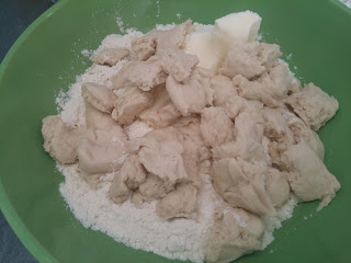 ed il lievito madre spezzettato. Aggiungete le farine setacciate.