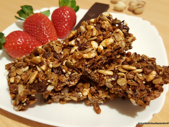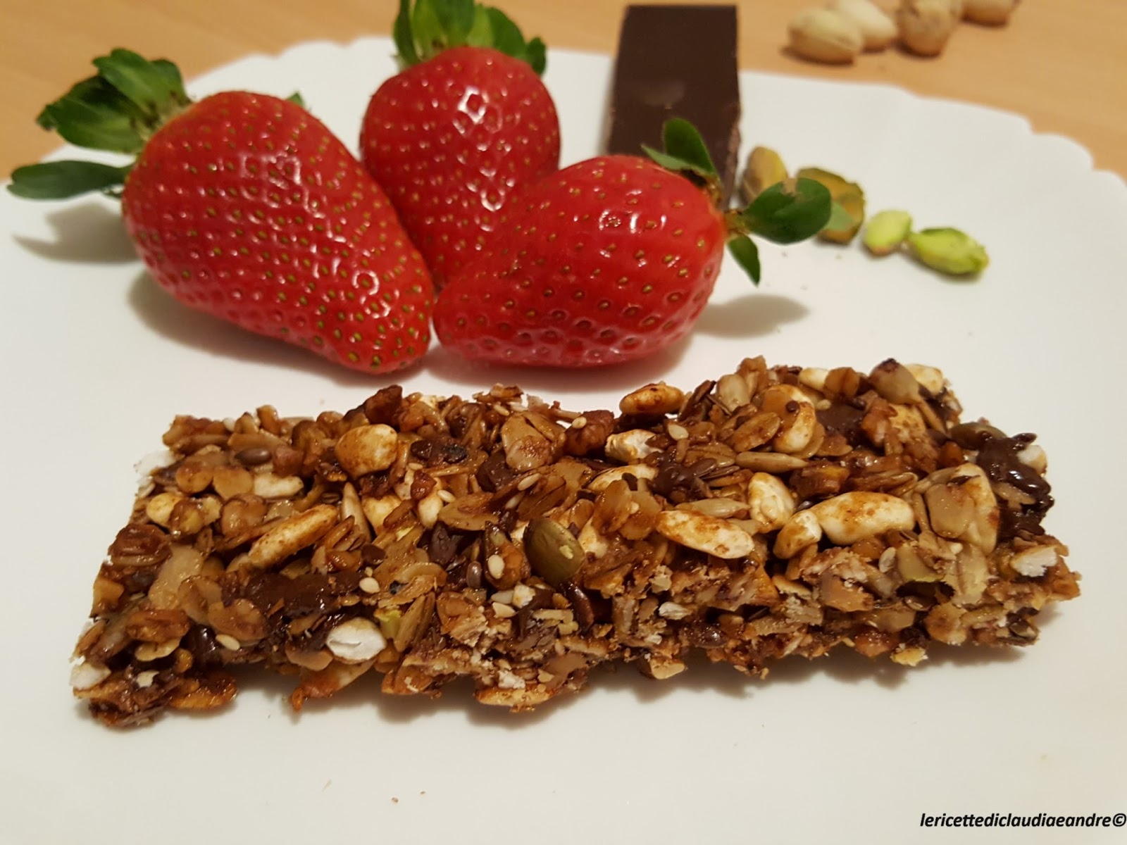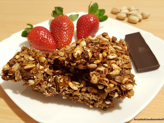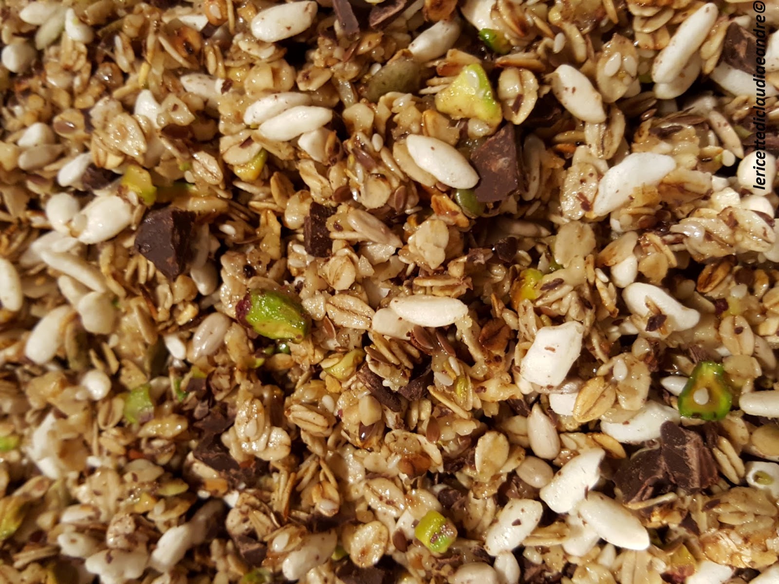 Granola con fiocchi d’avena integrali, noci, pistacchi e cioccolato fondente,al miele