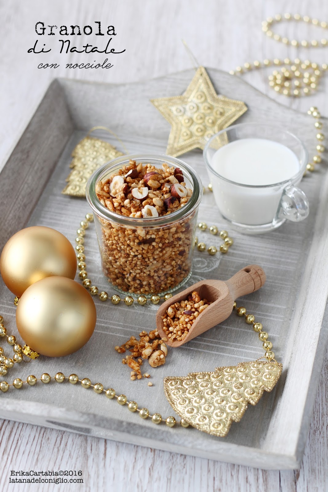La Granola di Natale, arricchita con tante nocciole croccanti, è uno di quei regali golosi che non dovrebbe mancare sotto l’albero questo Natale. Questa versione, in modo particolare, è perfetta anche per gli amici vegani o per chi ama in modo particolare seguire un’alimentazione sana e leggera con tutto il gusto delle cose fatte in casa con amore.