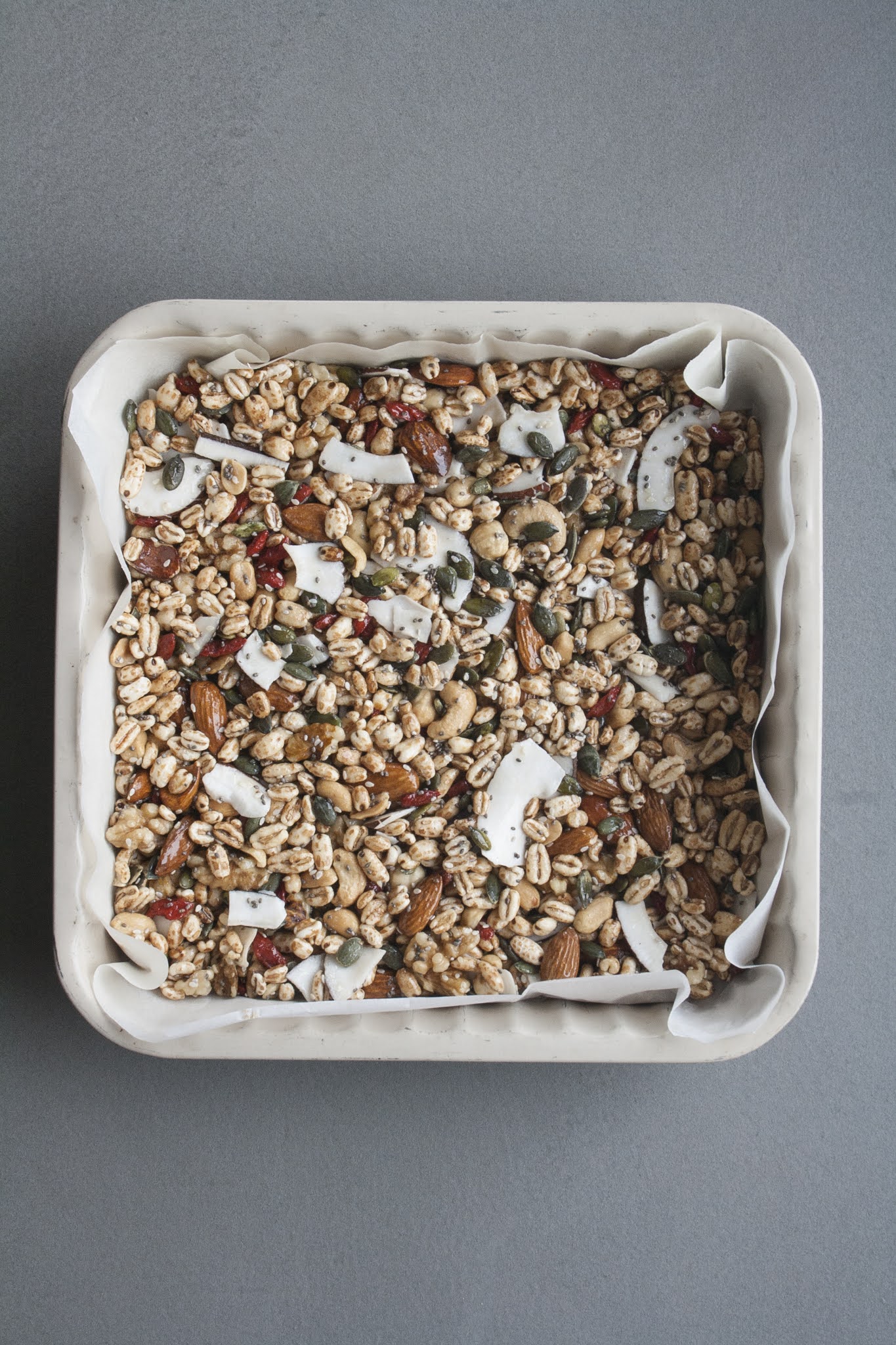 Infine spezzettate il tutto grossolanamente, mettete la granola all’interno di un contenitore ermetico e consumatela entro 2 settimane.