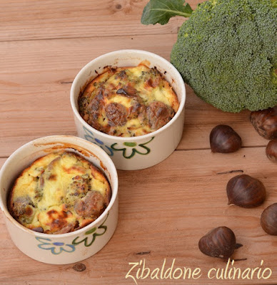 Imburrare accuratamente i ramequins, mettere poi i broccoli con le castagne e infine il composto a base di uova e caprino.