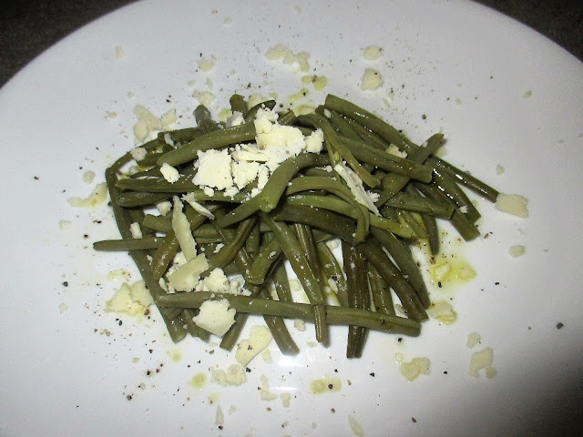 Cook the green beans in a pressure cooker adding the same green beans juice of one teaspoon of lemon (vitamin C contained in the lemon will cause the chlorophyll in green beans, cooking, do not “bake” so too works to keep as much as possible typical green color without altering taste and nutrients). When they are ready. Drain and place in a bowl with oil and vinegar. Stir well then serve with crumbled Castelmagno above.