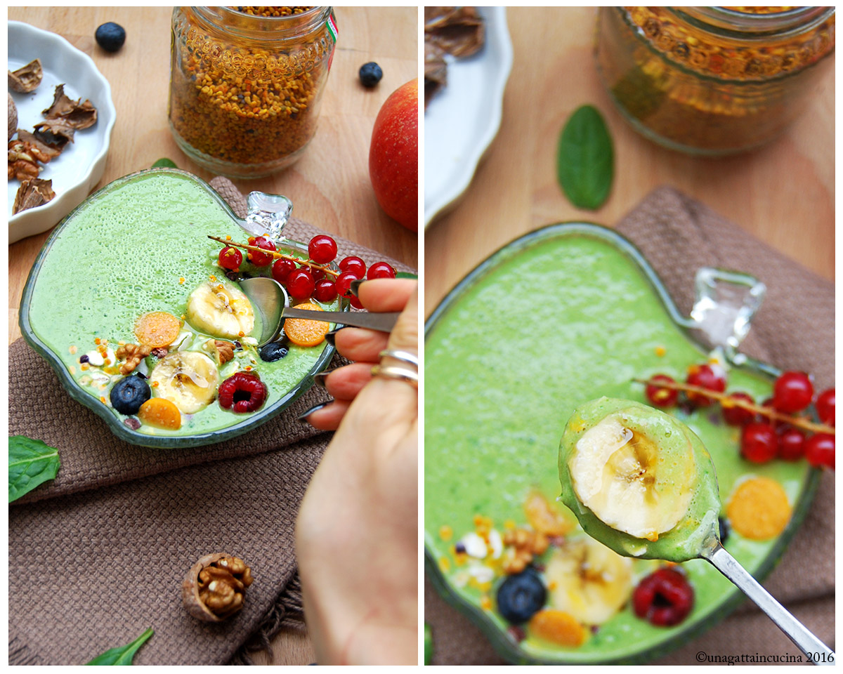 Ecco, accantonate il budino di chia per un po’, perché, ve lo dico la colazione perfetta adesso è lo smoothie, ma versato direttamente nella ciotola!