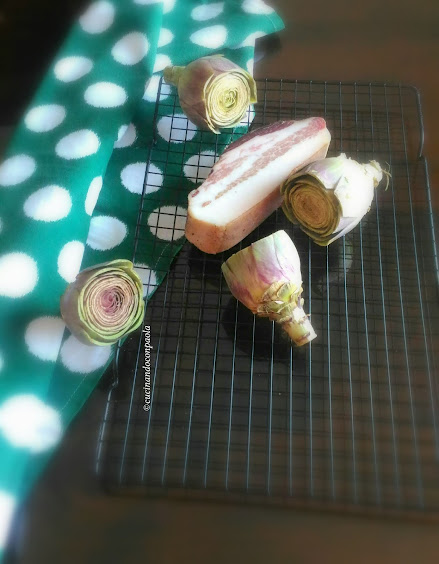 Nella stessa padella del guanciale cuocete i carciofi fino a renderli morbidi.