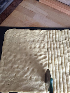 Con il taglia pizza o un coltello affilato, ricavare delle strisce larghe 1/2 cm circa