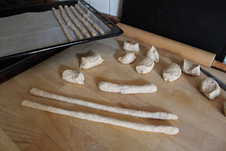 Ad impasto lievitato, dividerlo in tante porzioni e formare i grissini.