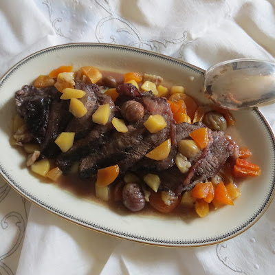 Guancia brasata con castagne e mele