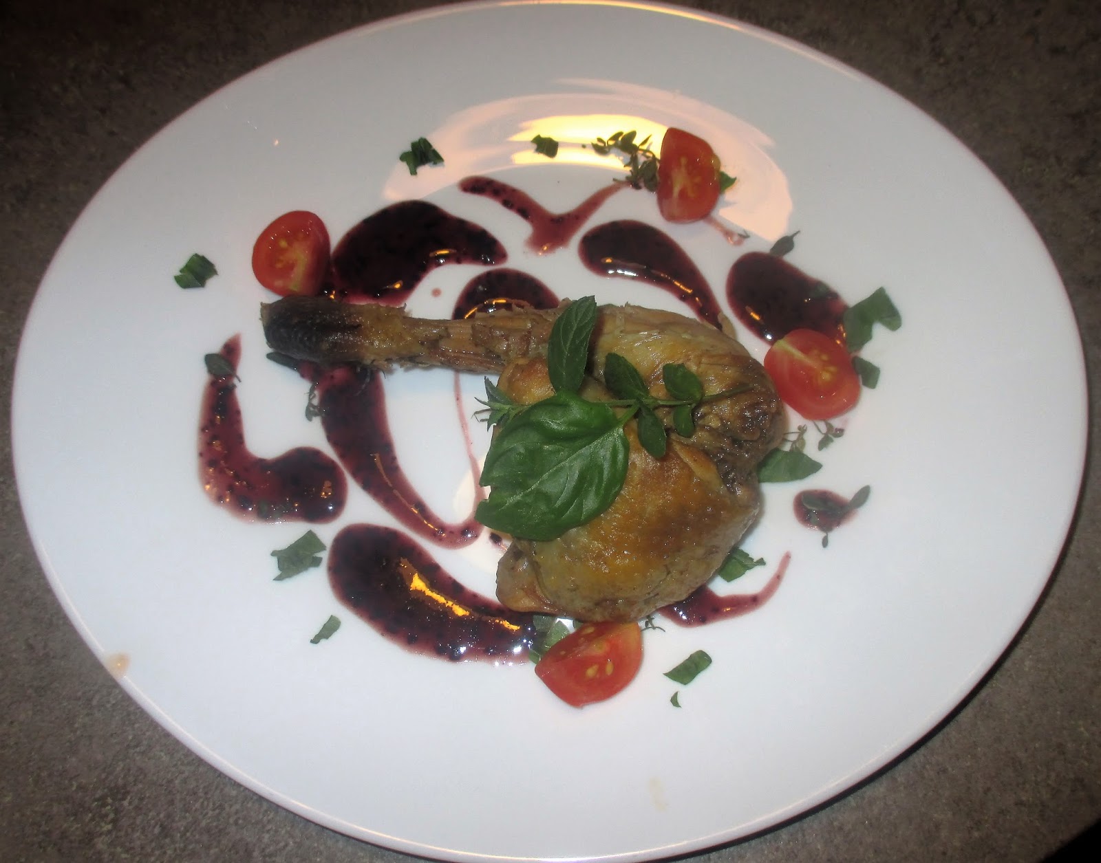 A guinea fowl marinated in dark beer with a special sauce blueberries, worth trying.