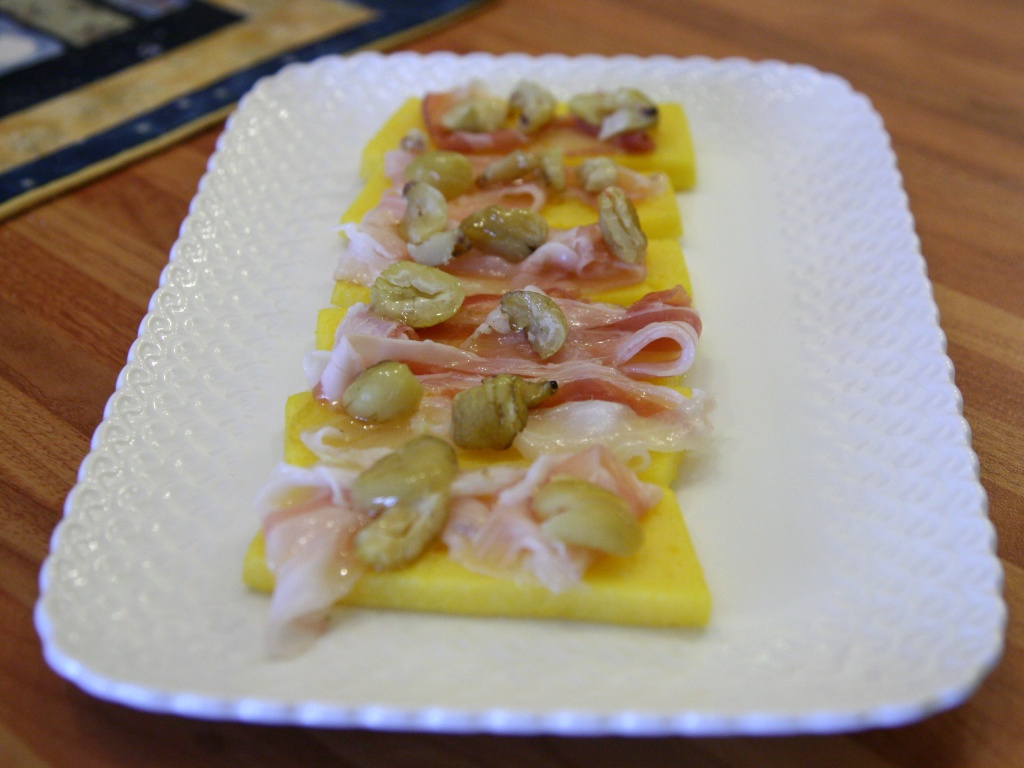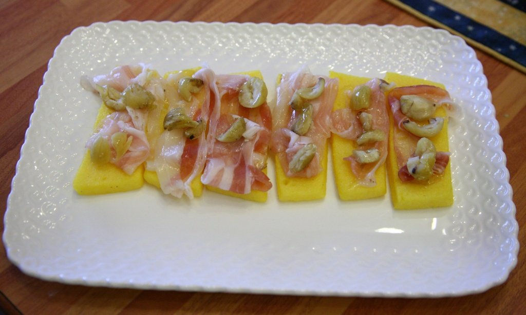Oggi io vi propongo una versione più moderna per servire la polenta: degli antipasti che possono rallegrare la tavola di questi giorni di festa.