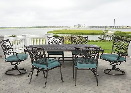 Manor 7 Piece Outdoor Dining Set 6 Swivel Rockers Large Cast Top Dining Table