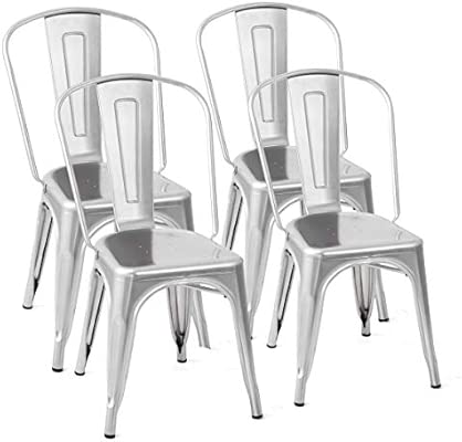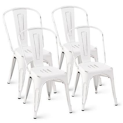 Costway Tolix Style Dining Chairs Metal Industrial Vintage Chic High Back Indoor Outdoor Dining Bistro Cafe Kitchen Side Stackable Chair Set Of 4