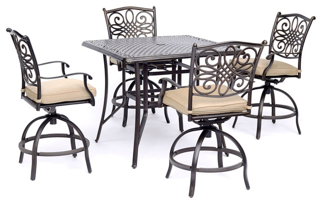 Traditions 5 Piece High Dining Set Tan With 42 Square Cast Top Table