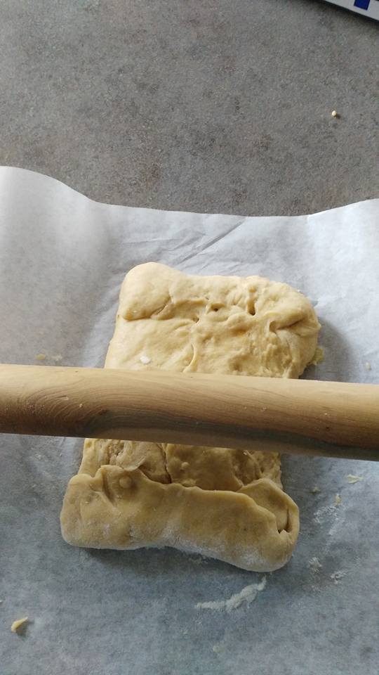 For the last batter, the time order to resume the dough leavening now risen and add the flour and remaining sugar, 2 eggs and vanilla. Then knead again, then take a glass bowl with lid and grease it with butter. Take the dough and fold to form a ball. Put it in the bowl and let it rise for another hour ina fresh place. then put in the fridge with bowl and covered for about 12 hours.