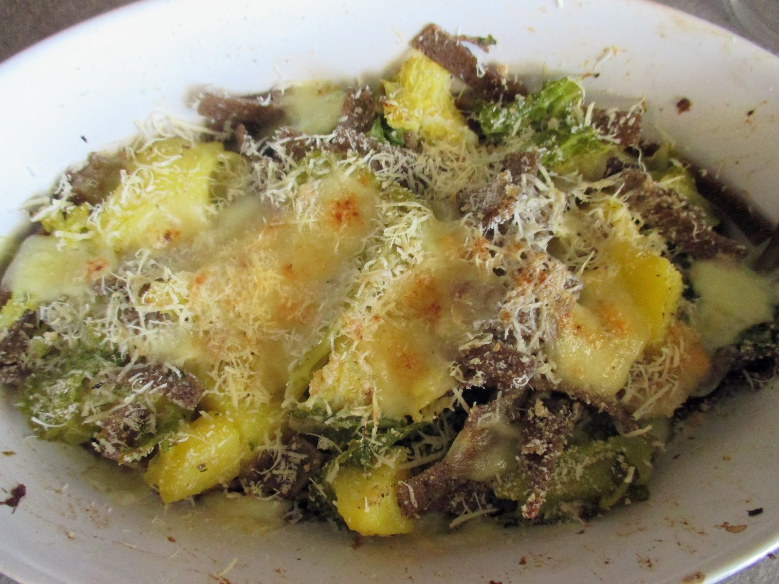 In a pot of hot water, cook the pizzoccheri. When they are ready, put them in a bowl and mix with the cabbage, potatoes, butter and fontina. then place them in an ovenproof dish and sprinkle with the parmigaino. Gratinated in an oven at 220 degrees for 15 minutes. Remove from the oven, then, let cool slightly and serve.
