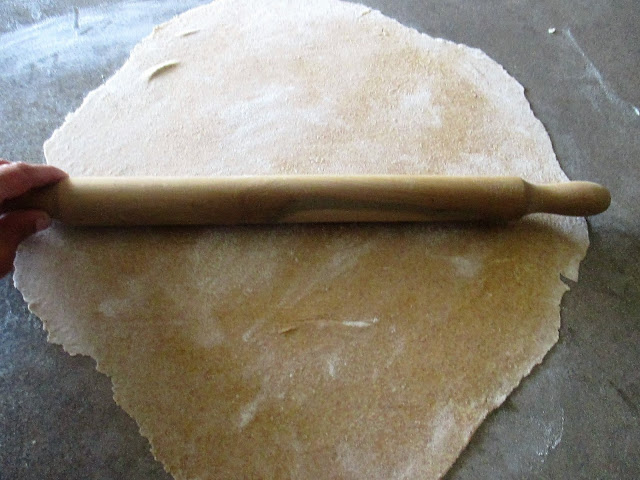 Maintenant, rouler le mélange avec un rouleau à pâtisserie, puis avec une roue dentée couteau à pizza font des nouilles.