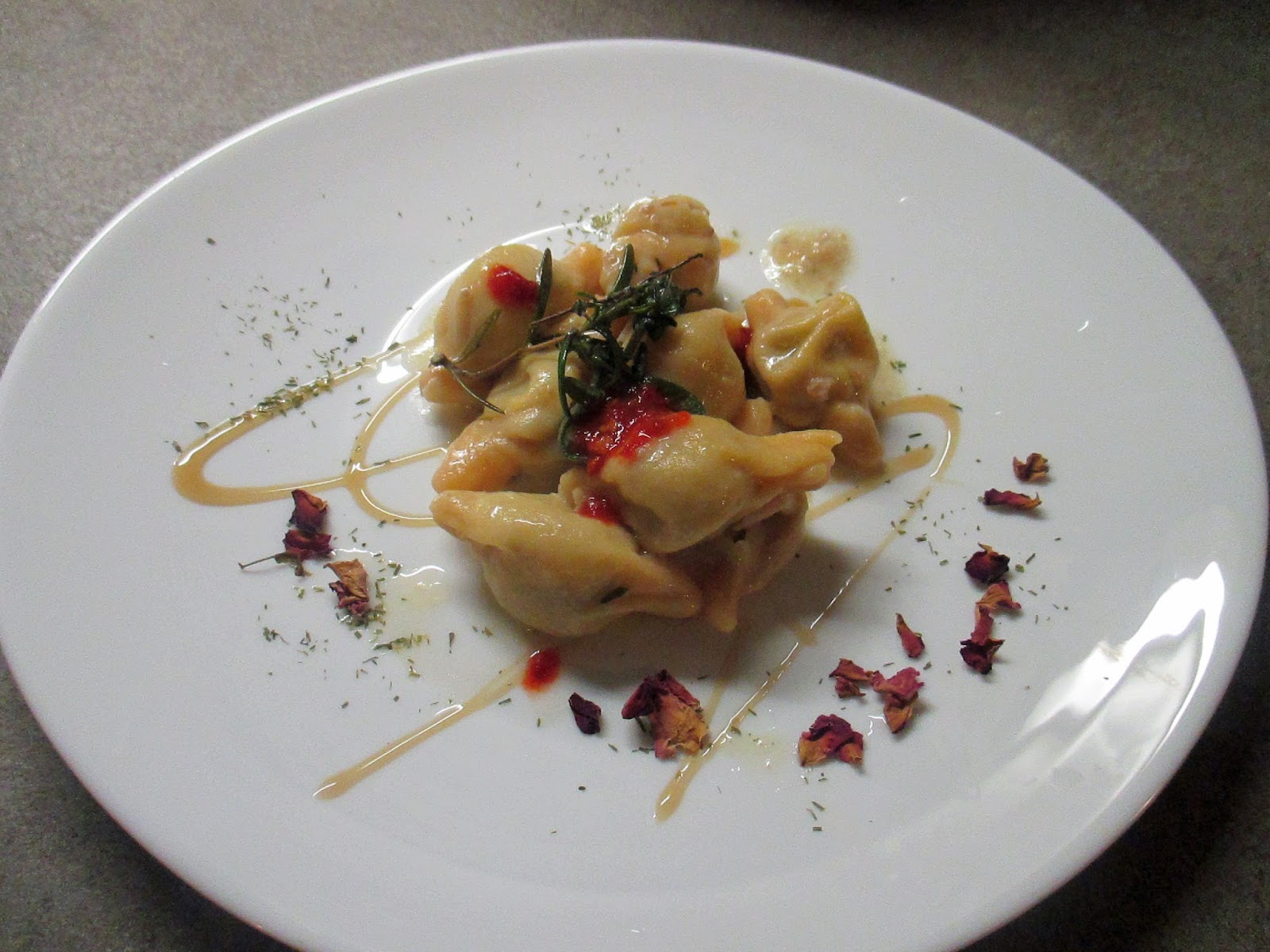 Un interessante raviolo con ripieno di arrosto di fassona piemontese (quello che ho avanzato). Il condimento è un “semplicissimo” burro e aromi con un goccio di salsa piccante, giusto per esaltarne i sapori.