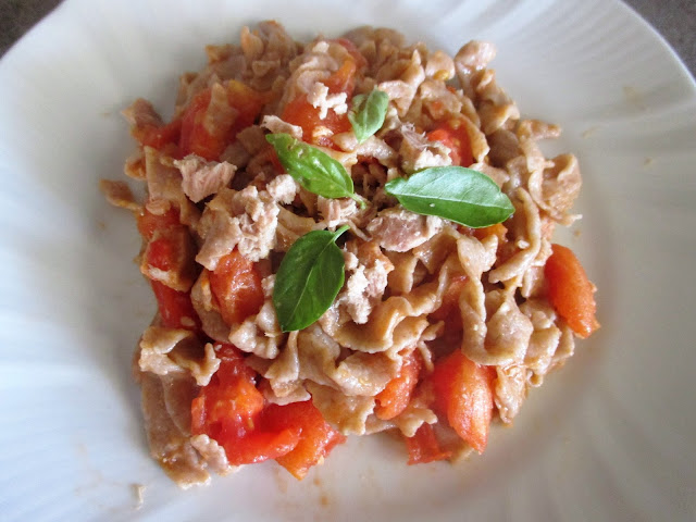 Cercare di mangiare integrale sta diventando veramente molto importante quindi queste tagliatelle di farro integrali condite con tonno, pomodori freschi e acciughe ci stanno proprio bene.