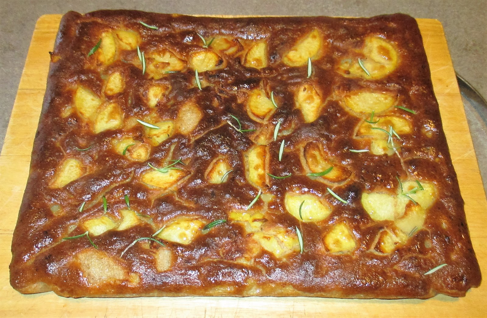 Let rise still covered for about 1 hour. After this time, pour over the water and oil emulsion, then add the remaining potatoes peeled and distribute it over the cake.