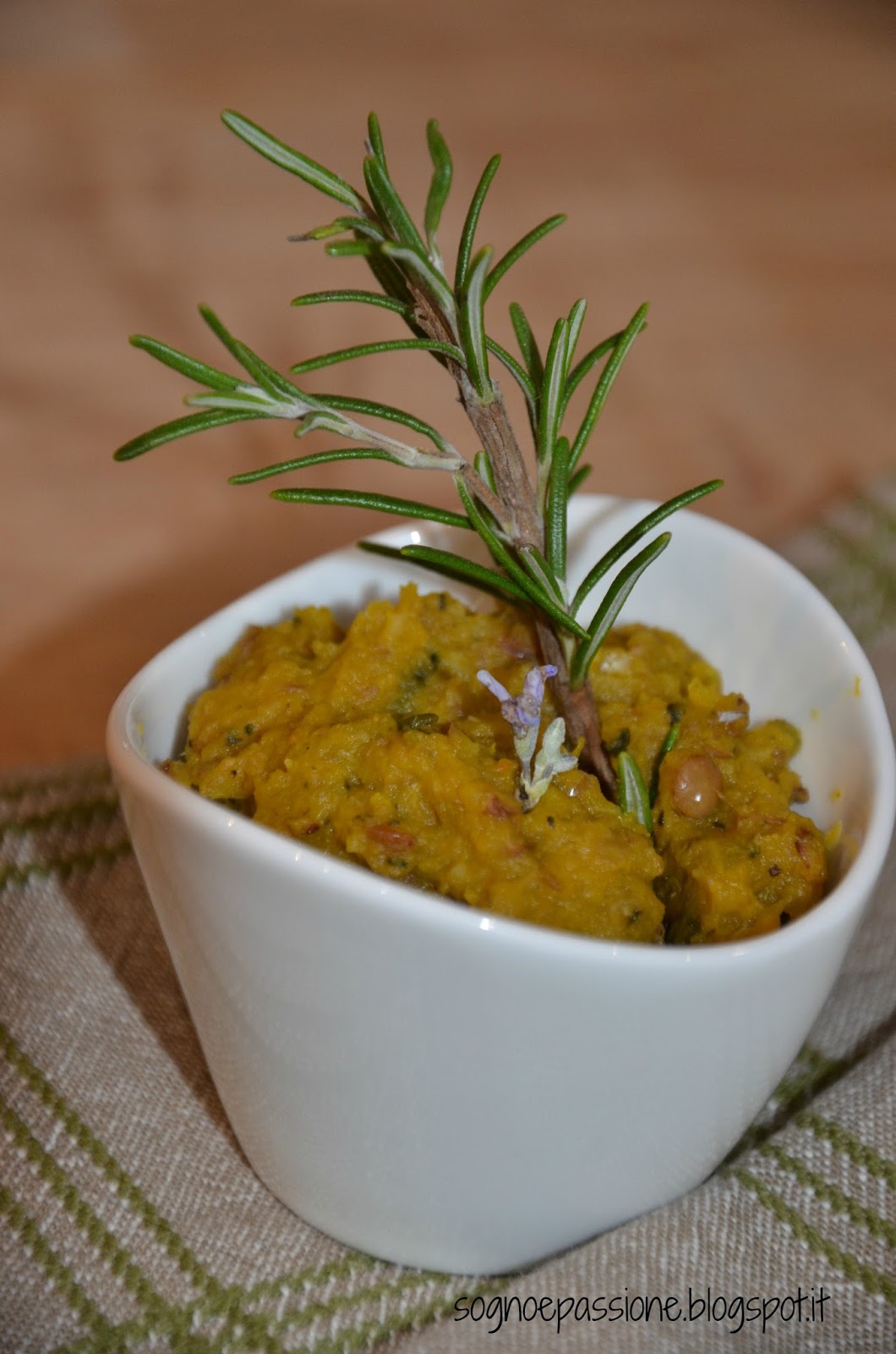 | Hummus di zucca e lenticchie profumato al rosmarino |
