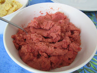 Hummus, succo di barbabietola o un cucchiaino di polvere di barbabietola essiccata.
