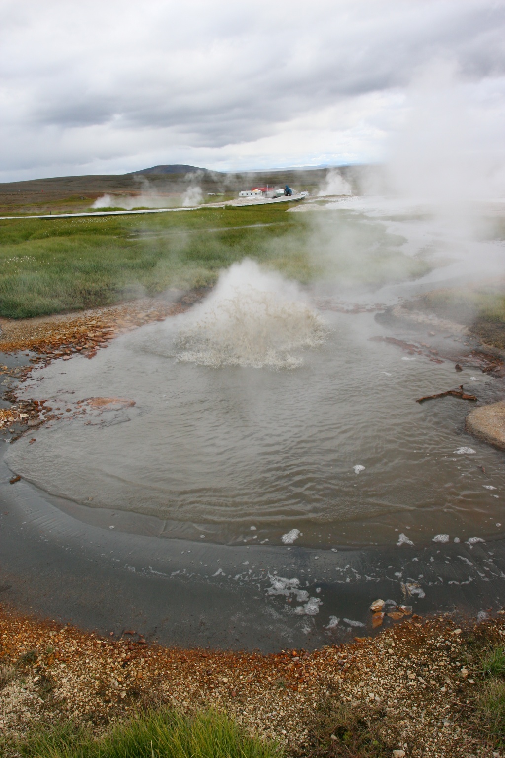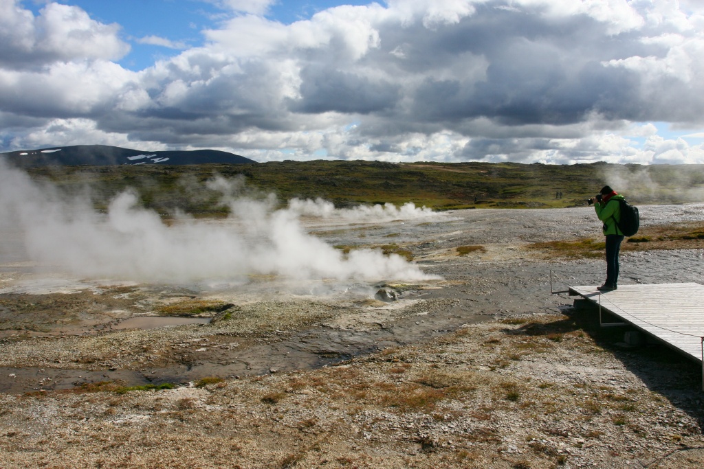L’area geotermica presenta una gran quantità di sorgenti calde, e bolle multicolori e un piccolo cono biancastro che emette un getto di vapore che sibila ininterrottamente. Il rumore è lo stesso di una pentola a pressione che sfiata.