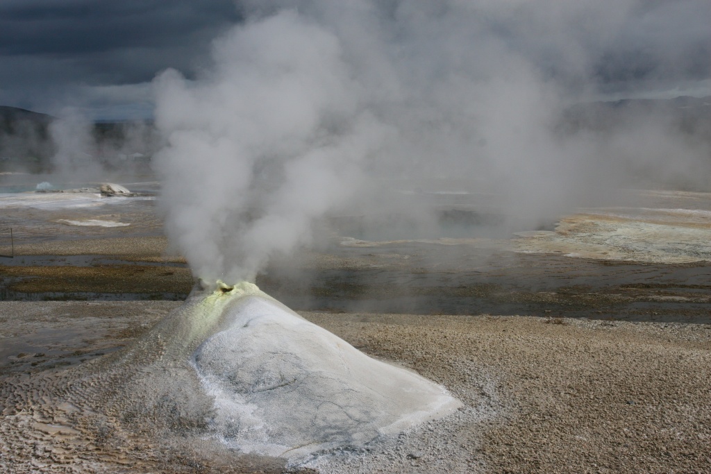 Concrezioni multicolori, sorgenti calde, vapori, bolle di lava, pozze che ribollono questo è ciò che potete vedere a Hveravellir, un’area geotermale situata 20 km a sud di Husavik (Islanda) raggiungibile nel periodo estivo tramite la pista Kjölur (la strada numero 35) che attraversa in 237 Km gli altipiani islandesi da nord a sud.