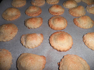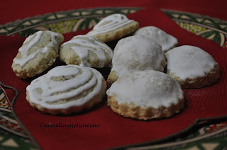 Eccoli appena sfornati: faccio raffreddare e intanto preparo una glassa con zucchero a velo, albume e qualche goccia di succo di limone.