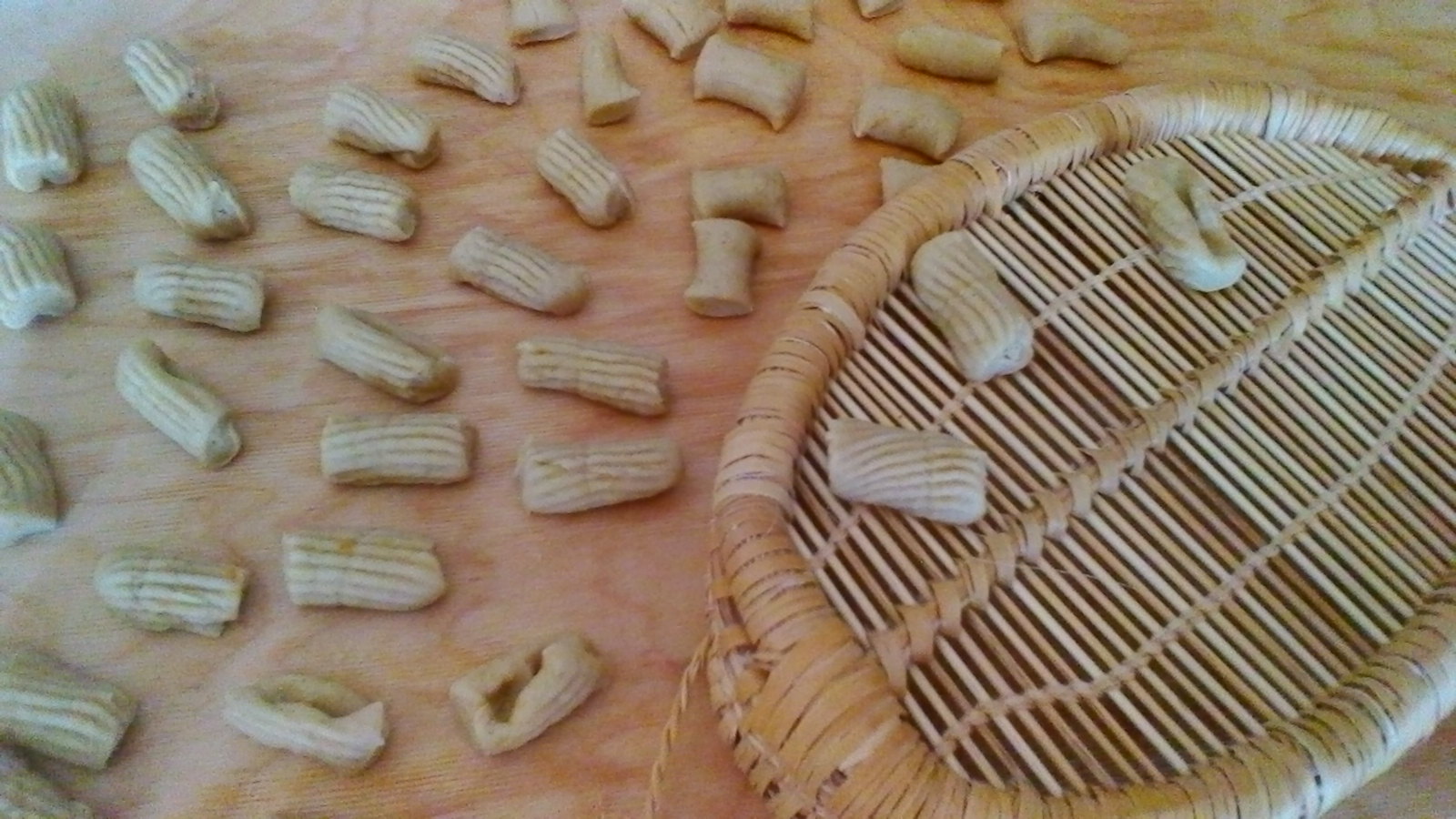 In seguito dividete l’impasto in tanti cordoncini dalla grandezza di un pollice e tagliateli in piccoli pezzetti. Fateli scivolare quindi su un crivo ( come vuole la tradizione) schiacciandoli con l’indice e il medio, ma naturalmente potete usare il rigagnocchi.
