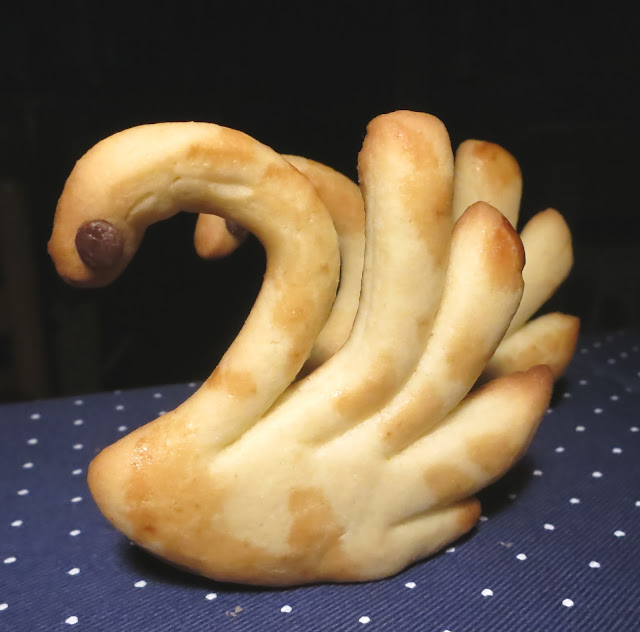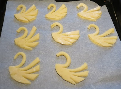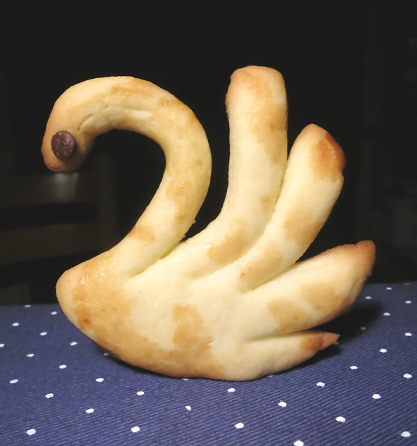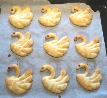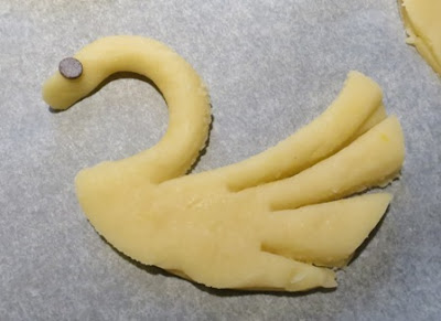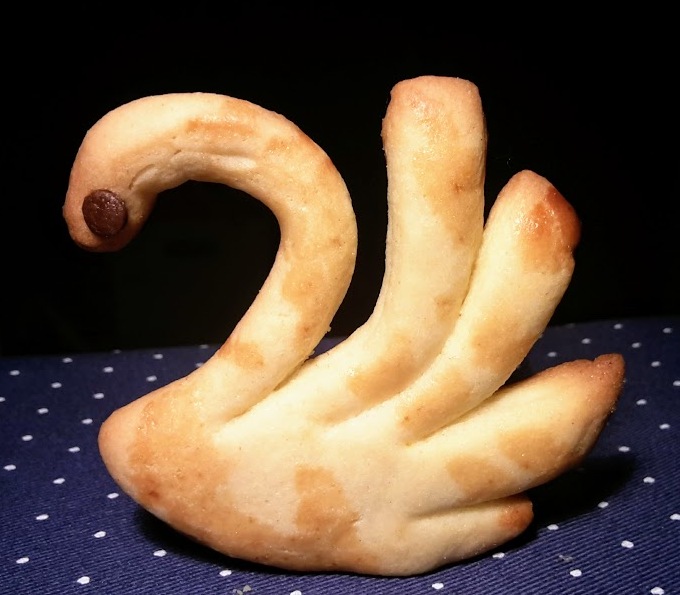 Man mano porre i biscotti su una teglia grande, quella in dotazione al forno, (ne occorrerà più di una) e sagomare i cigni come si può vedere dalla foto..