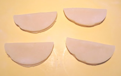 Incidere la pasta con un taglia biscotti di 8 cm di diametro….