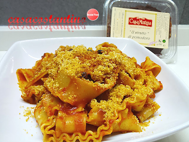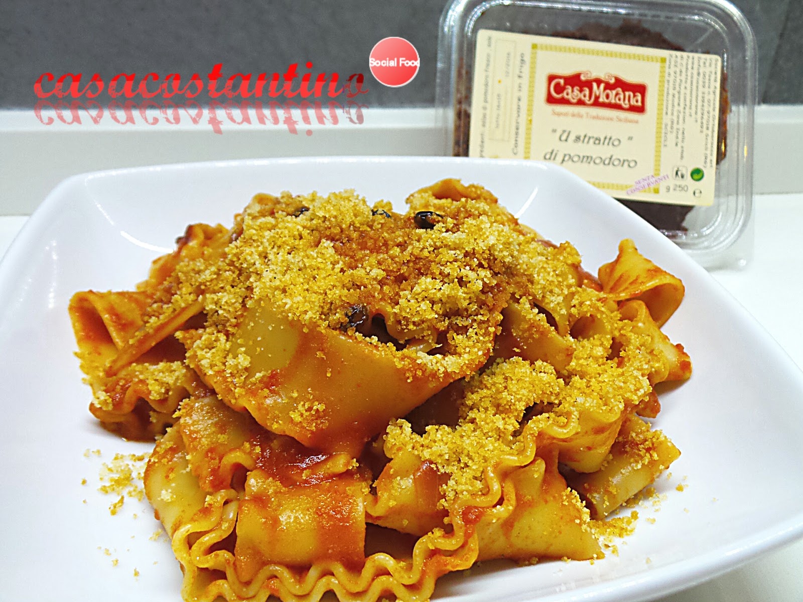 Un piatto povero dal sapore inconfondibile reso dolce dal concentrato di pomodoro (l’astratto) ma dal gusto deciso grazie alle acciughe sotto sale con un tocco ancor più rustico per via della muddica atturata (pangrattato tostato).