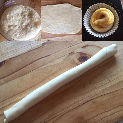 Sciogliete il lievito di birra nell’acqua. In una ciotola versate le farine, aggiungete lo zucchero e l’acqua in cui avete sciolto il lievito. Aggiungete il latte intiepidito, l’uovo e la buccia grattugiata del limone. Iniziate a lavorare gli ingredienti con la planetaria, come ho fatto io, oppure a mano. Quando l’impasto è abbastanza compatto unite il burro a pezzetti, facendolo incorporare poco alla volta e infine il sale. Ottenuto un impasto morbido e liscio trasferitelo in una ciotola capiente, coprite con la pellicola e lasciate lievitare fino al raddoppio. Trascorso il tempo trasferitelo su una spianatoia e dividetelo in 6 parti. Stendetene ognuna in una sfoglia rettangolare sottilissima, spalmatela con il burro morbido, cospargetela con zucchero (qualcuna l’ho farcita con marmellata) e arrotolatela su se stessa, partendo dal lato più corto.