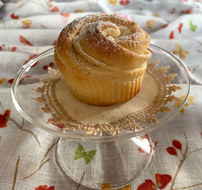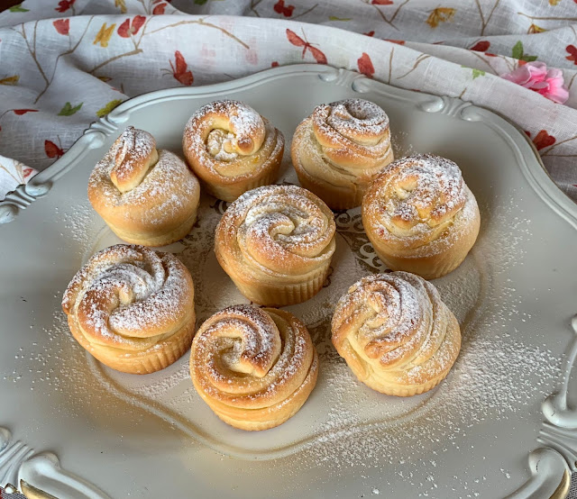 Infornate i cruffin nel forno preriscaldato a 180° per 25 minuti circa. Una volta pronti e sfornati spolverizzateli con zucchero a velo.