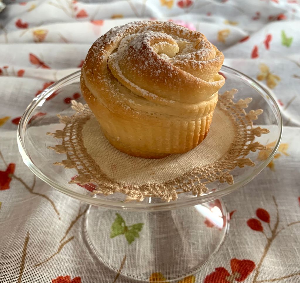 Infornate i cruffin nel forno preriscaldato a 180° per 25 minuti circa. Una volta pronti e sfornati spolverizzateli con zucchero a velo.