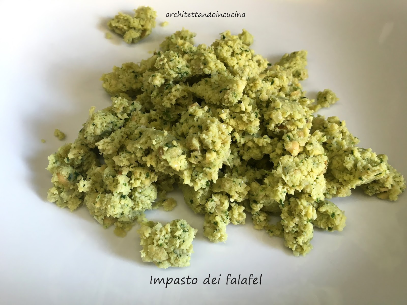 Mettere a bagno i ceci per 24 ore, ma dopo 12 ore cambiare l’acqua. Trascorse le 24 ore asciugare i ceci e frullarli (attenzione i ceci devono essere crudi) insieme all’aglio, al cipollotto, al prezzemolo e al cumino, al sale, finché non diventa una pasta lavorabile.