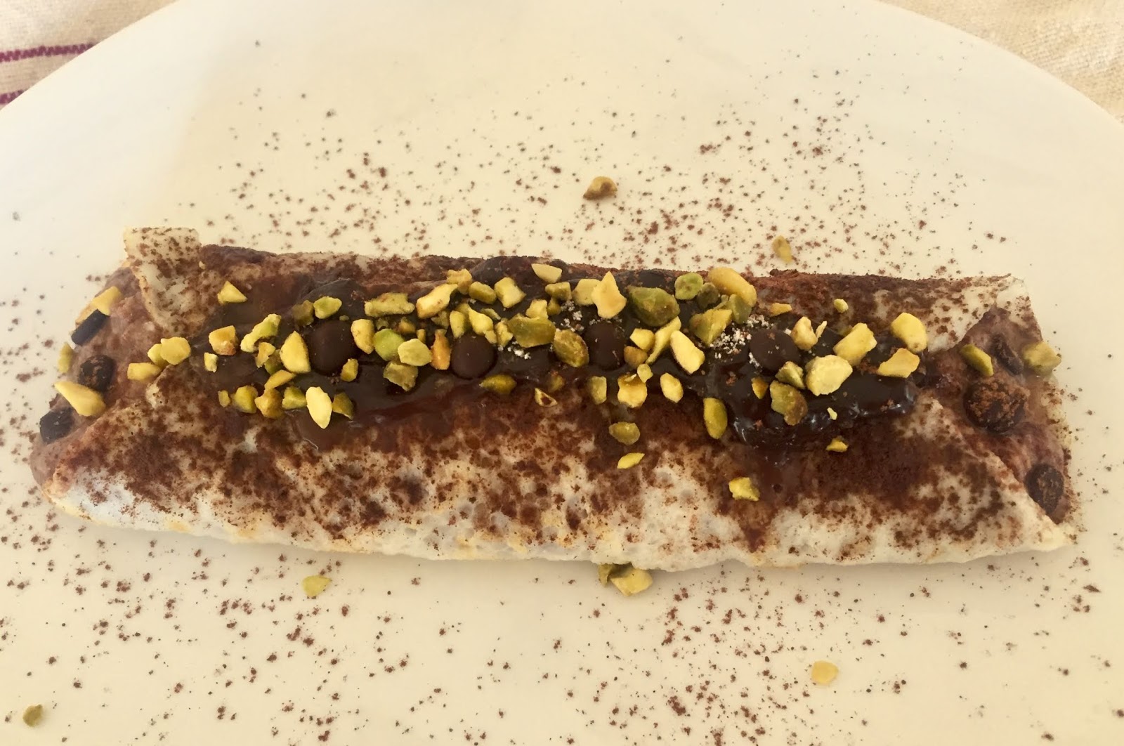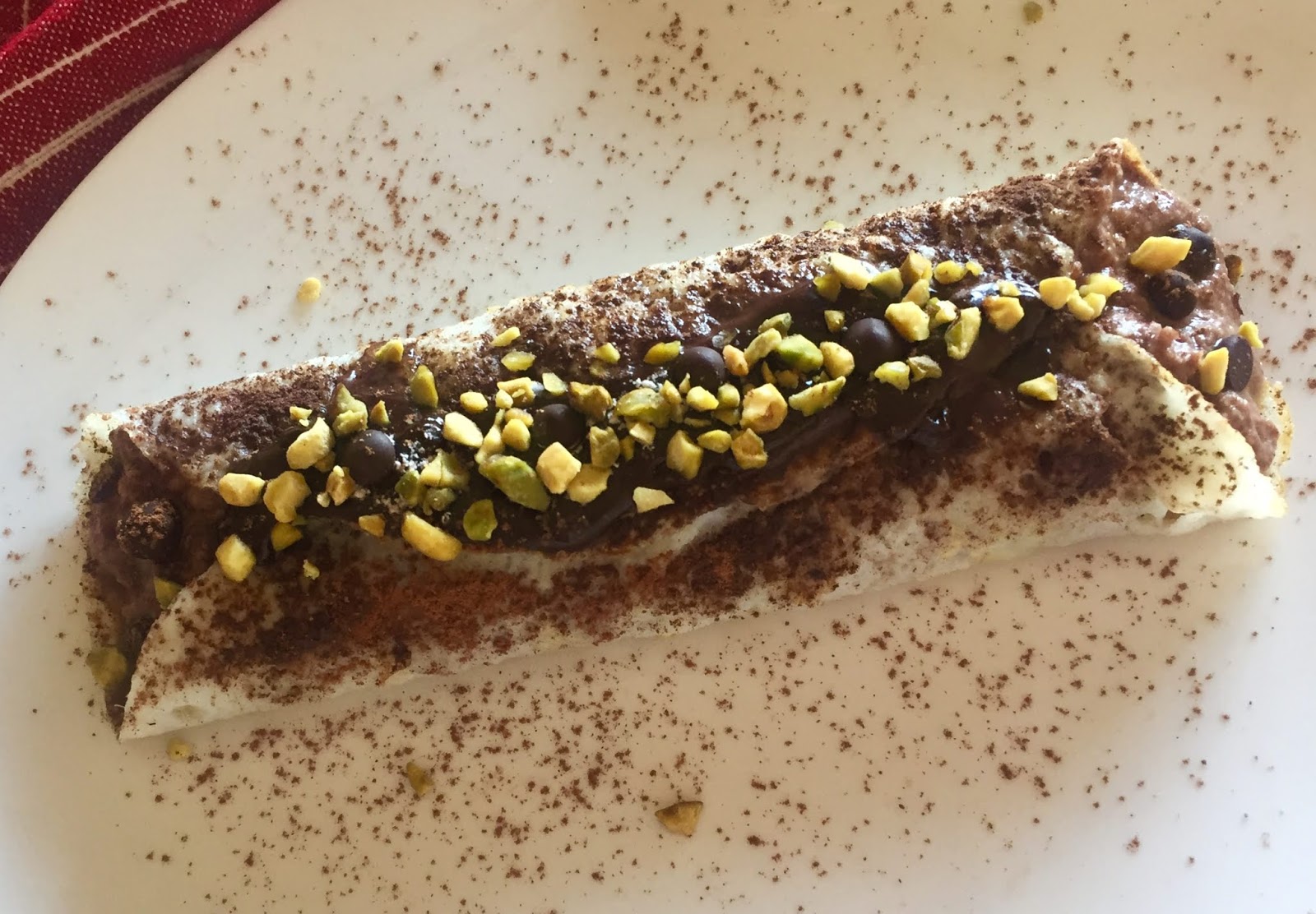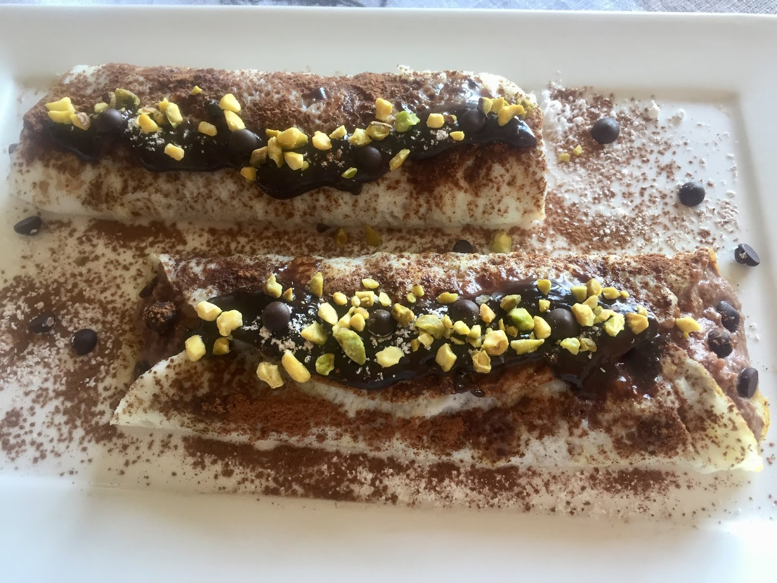 Una volta pronte sistemate al centro di ciascuna un pò di composto, arrotolatele e disponetele in un piatto. Cospargete le dita di apostoli con del cacao setacciato e decoratele con glassa al cioccolato e granella di pistacchio. Servitele sia calde che fredde.