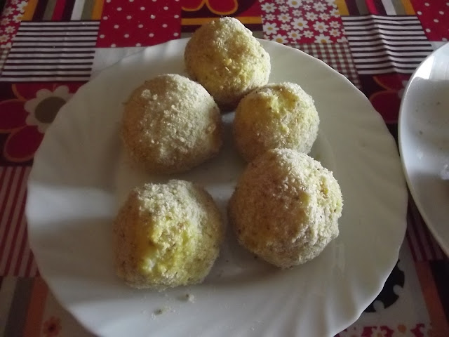 Passate poi ogni arancino nella farina, poi nelle uova sbattute precedentemente e infine nel pangrattato.