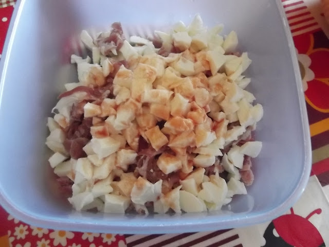 - prosciutto cotto e crudo spezzettato q.b.