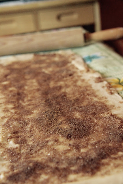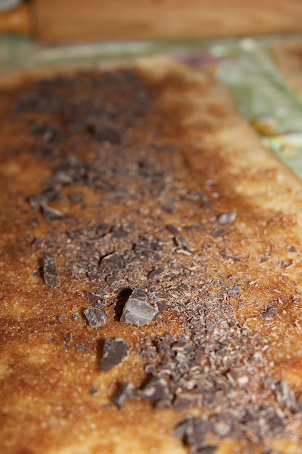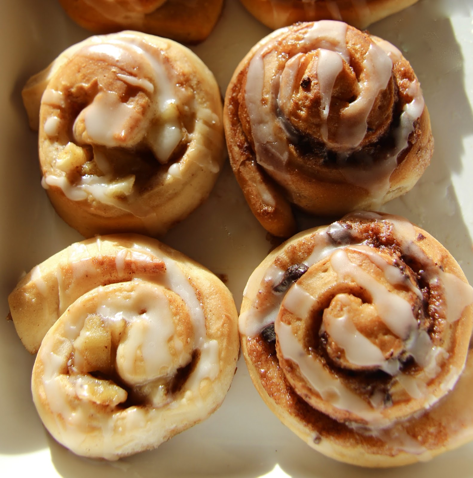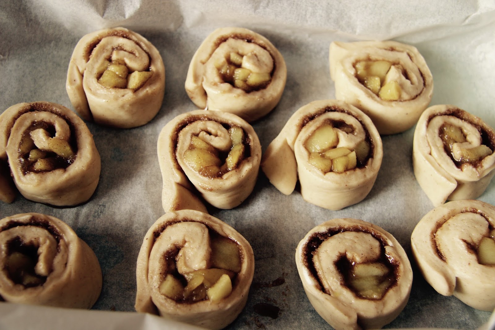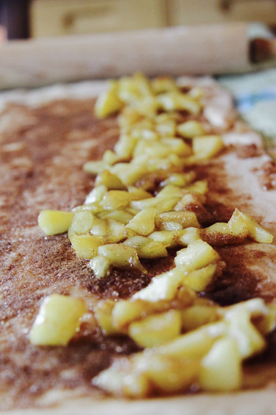 Nella versione originale il ripieno consiste solo in zucchero bruno e cannella, mentre io ho deciso di arrichirlo con delle mele e del cioccolato.