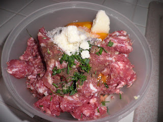 Per il ripieno condire la carne con il formaggio, le uova, il sale, il pepe nero, il prezzemolo tritato e due spicchi d’aglio tritati finemente; aggiungere quindi una manciata di pangrattato (non esagerate altrimenti il ripieno sarà troppo asciutto); se l’impasto risultasse troppo sodo ammorbiditelo con qualche cucchiaio di brodo.