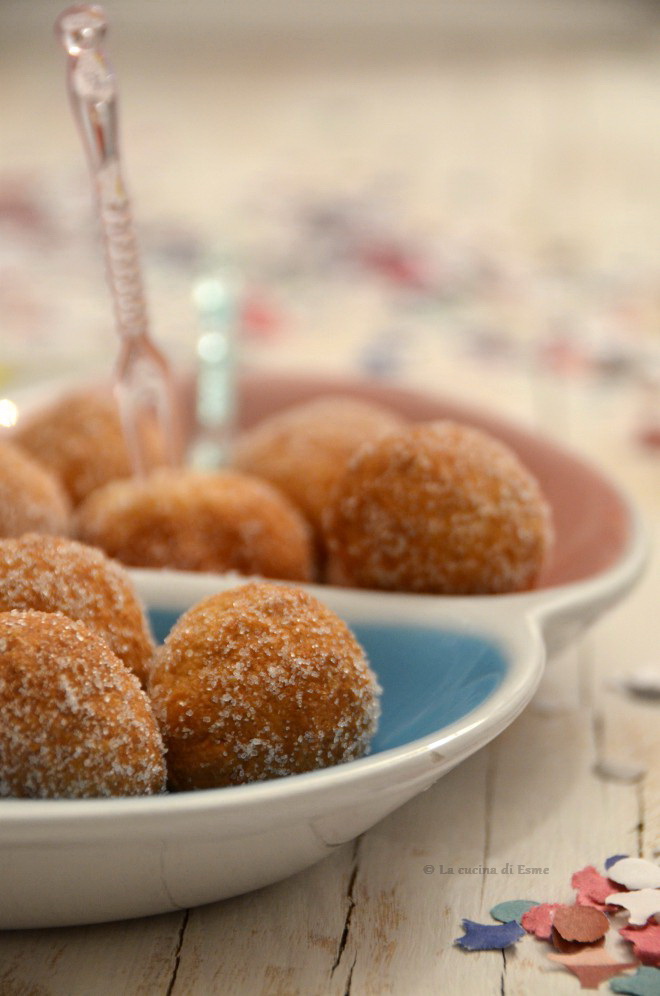 In una pentola dal fondo spesso mettete l’acqua, il burro, lo zucchero e la buccia di limone. Portate ad ebollizione. Quando l’acqua sfiorerà il bollore aggiungete in un colpo solo la farina. Spegnete il fuoco e mescolate tutto fino ad ottenere un composto omogeneo e privo di grumi. Cuocete questo composto a fuoco basso per circa 5 minuti, deve staccarsi dalla pentola. Spegnete e fate raffreddare completamente. Una volta freddo mettetelo nella planetaria, con il gancio a foglia, a velocità media e aggiungete un uovo alla volta, per ultimo il bicarbonato. Riscaldate abbondante olio di semi, non appena sarà ben caldo prelevate l’impasto aiutandovi con due cucchiaini e versatelo direttamente nell’olio caldo. Friggete i tortelli pochi per volta, scolateli quando saranno ben dorati e metteteli a scolare su carta assorbente da cucina. Rotolateli ancora caldi in un piatto dove avrete messo dello zucchero semolato. Nel caso voleste farcirli, per renderli ancora più golosi, magari con della crema, fatelo una volta tiepidi utilizzando una sac à poche con becco lungo.