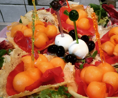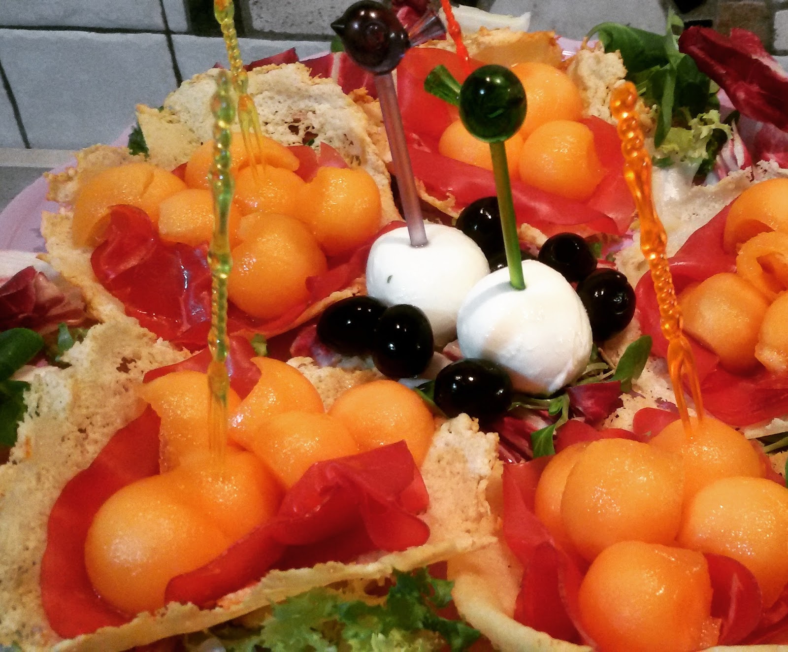 | Cialde di Parmigiano con Bresaola & Melone* (*potete usare il melone giallo oppure l’ananas che si trovano sempre) |